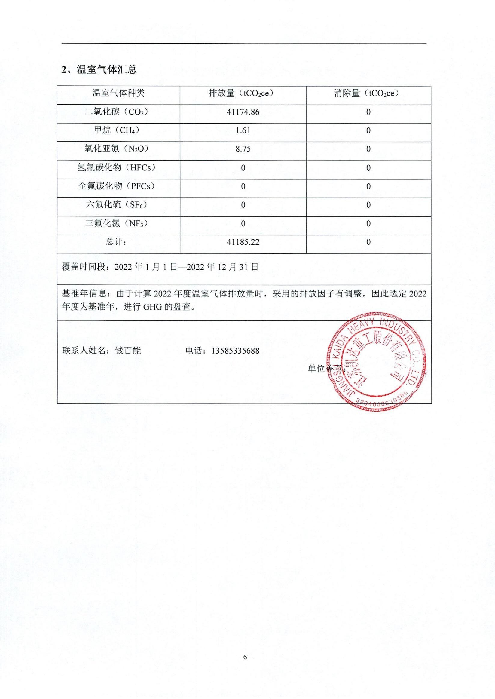 2023年度凱達重工溫室氣體排查聲明及產(chǎn)品碳足跡證書公示