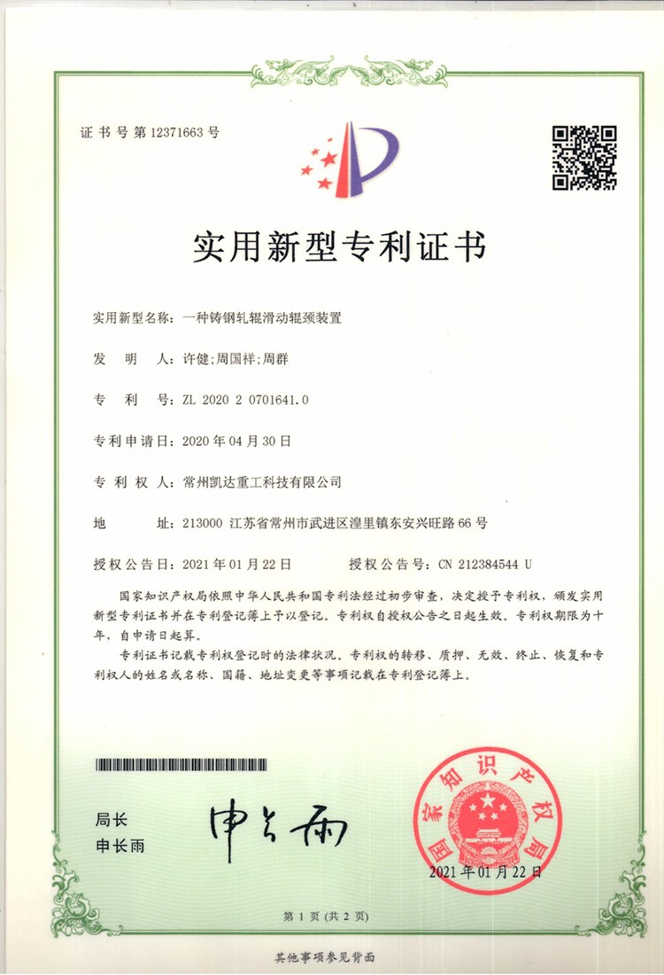 一種鑄鋼軋輥滑動輥頸裝置